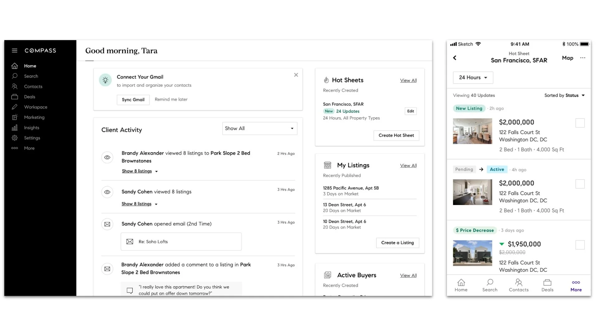 As more tools become available for buyers to search for homes and apartments on their own, it is crucial for agents to be aware of all market changes as soon as they occur to prove their value in market knowledge and obtain / retain clients. In 2019 a major request from Compass agents, via an internal feedback channel, was for the MLS “Hot Sheet” feature to be included in the Compass platform.