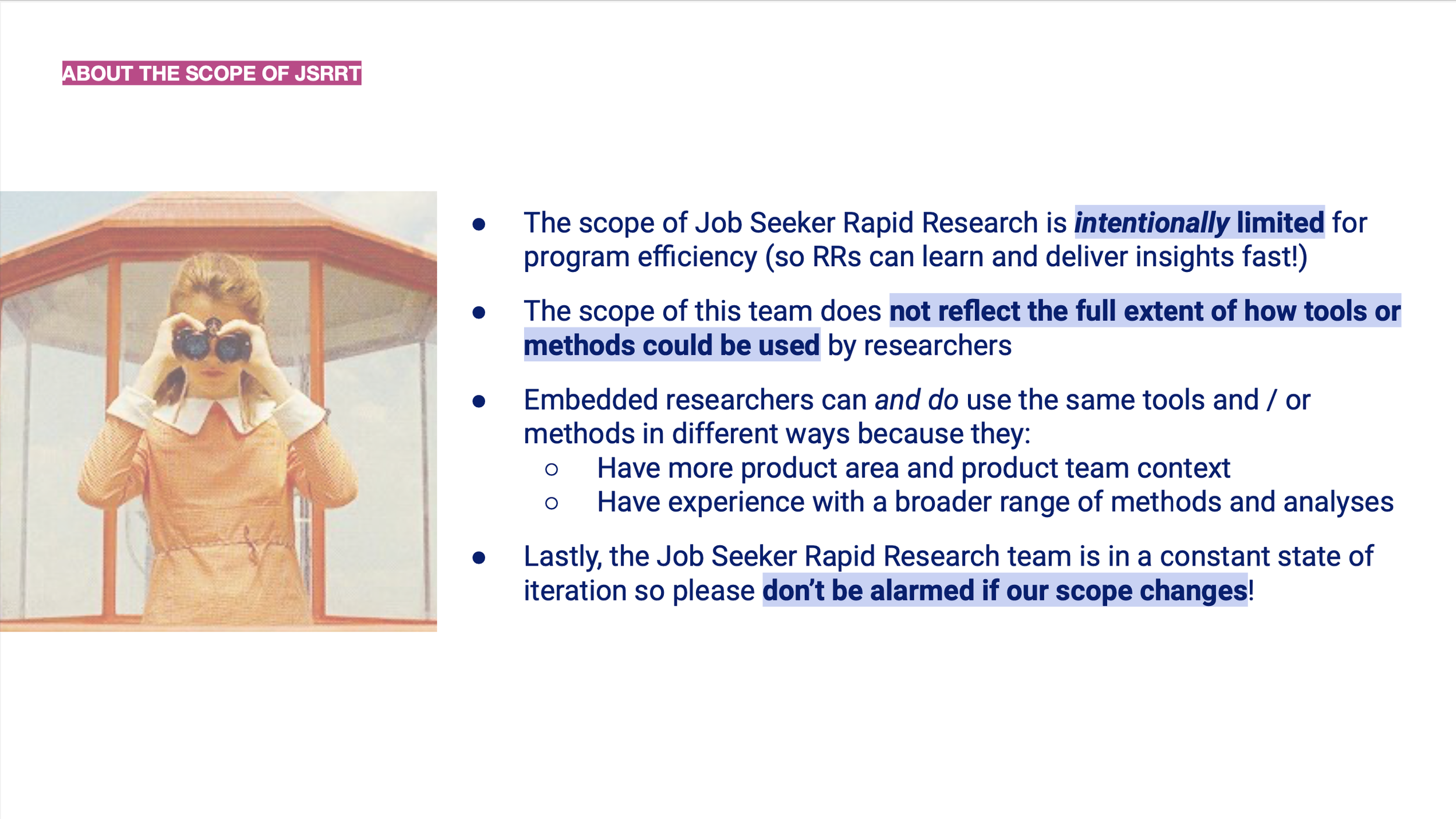 Rather than doubling down on internal democratization, we chose a different path: welcome non-researchers to participate, but focus our training efforts on developing new researchers from outside the organization. This pivot meant not just solving a capacity problem, it meant building in the spirit of Indeed’s mission to help people get jobs.